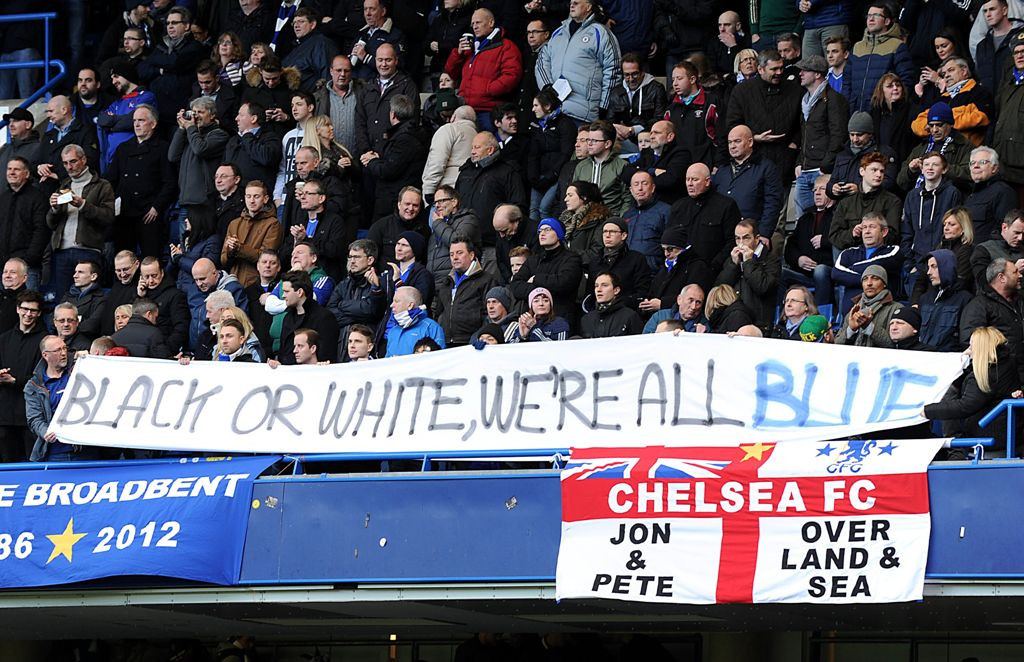 Kemudian, tidak hanya itu, bagi para penonton yang tidak kedapatan menyentuh spanduk tersebut juga dibagikan selebaran berwarna putih biru dengan tulisan "Tidak ada rasisme di Bridge (Stadion Chelsea), cara itu yang kami suka".