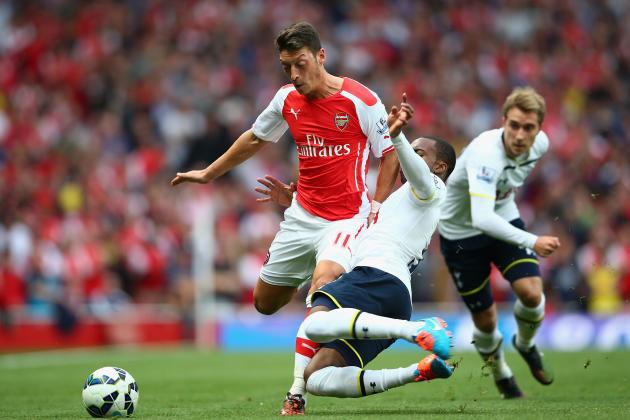 Aksi Mesut Oezil saat Arsenal berhadapan dengan Spurs musim lalu (Foto: Google Image)