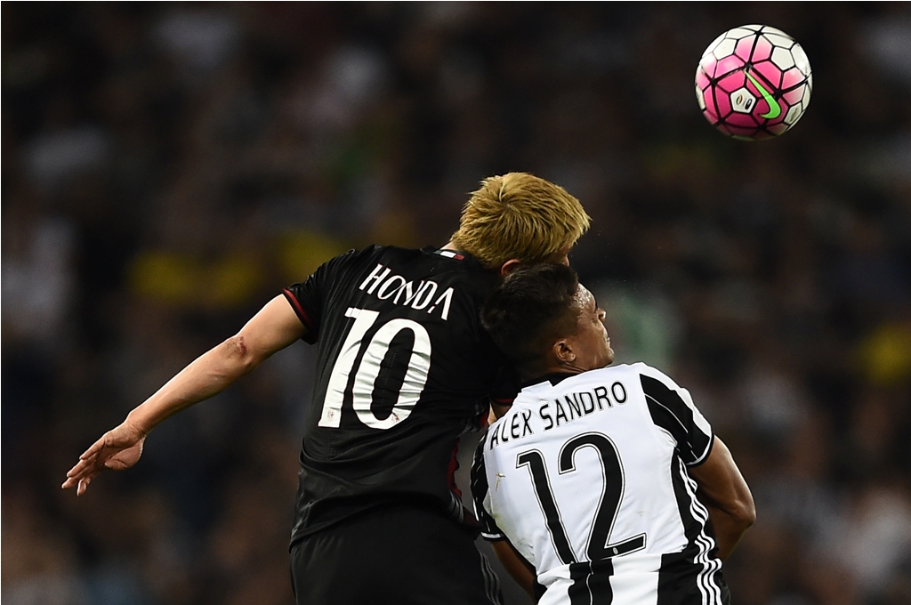 Honda mencoba melakukan tembakan spekulasi ke gawang Juventus jelang turun minum. Namun tembakannya masih belum menemui target dan menutup babak pertama dengan skor 0-0.