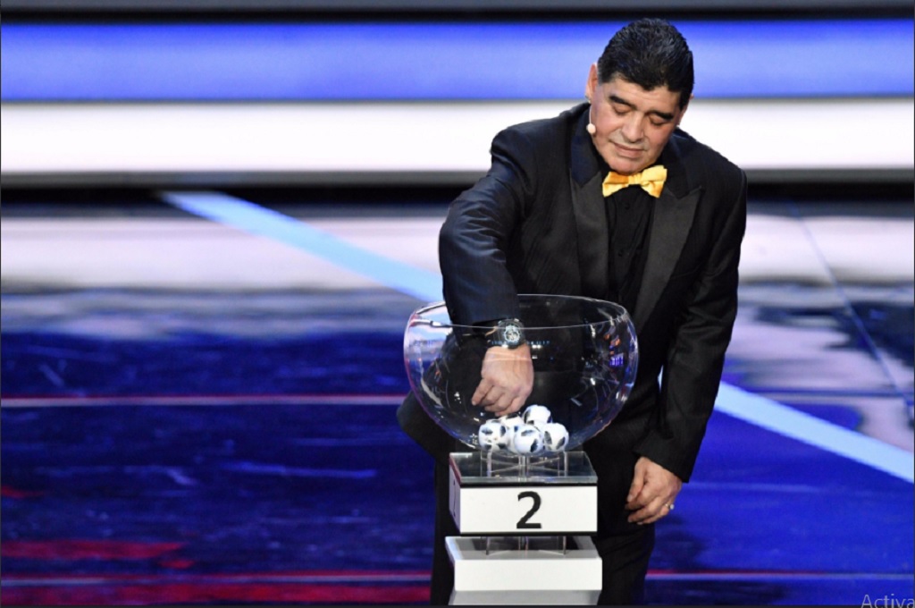 Diego Maradona sebagai salah satu pengambil undian Piala Dunia 2018 (Foto: BBC)