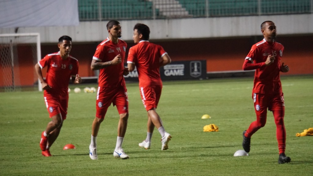 Sejumlah pemain Arema saat latihan di Stadion Maguwoharjo. (Foto: medcom.id/Ahmad Mustaqim)