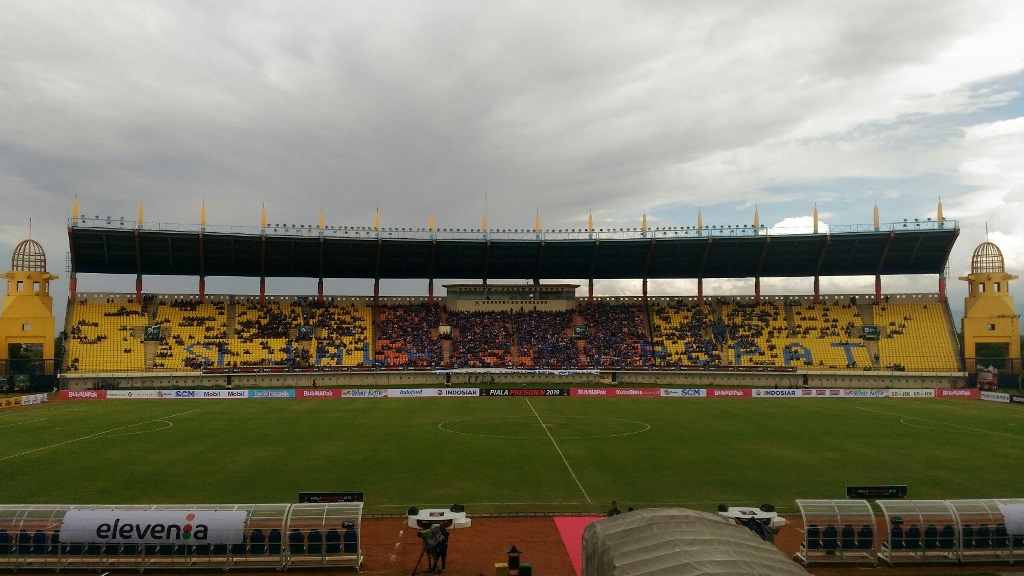 Bandung: Stadion Si Jalak Harupat masih terlihat lenggang di setiap tribun menjelang pembukaan Piala Presiden 2019. Padahal turnamen pramusim tersebut akan mulai dibuka pada pukul 15:00 WIB.