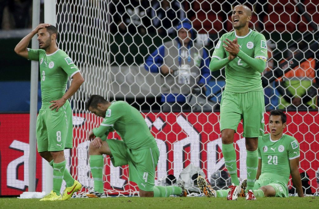 Setelah bermain imbang 1-1 melawan Rusia dan memastikan diri melaju ke babak 16 besar, petualangan Aljazair di Piala Dunia 2014 berakhir di Porto Alegre. (Reuters)