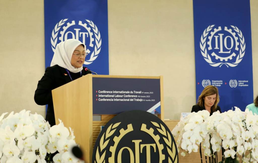 Pada forum tahunan ini, ia juga menegaskan komitmen Indonesia untuk mempromosikan dialog sosial dengan pemangku kepentingan berdasarkan kebebasan berserikat dan hak untuk perundingan bersama.
