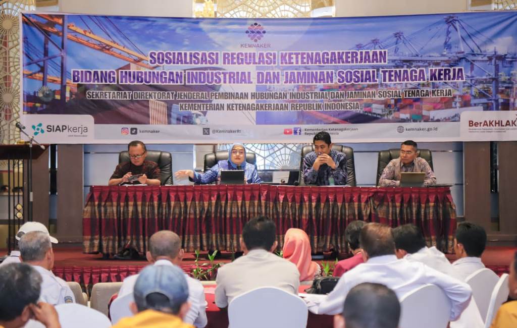 "Untuk mendukung implementasi NLE di bidang ketenagakerjaan, maka penataan NLE harus diimbangi dengan ketersediaan SDM yang kompeten, peningkatan pelindungan tenaga kerja, dan upaya mitigasi terkait masalah ketenagakerjaan yang akan timbul," kata Dirjen PHI & Jamsos Kemenaker, Indah Anggoro Putri saat memberikan 'Sosialisasi Regulasi Pelindungan Kerja Bagi Tenaga Kerja Bongkar Muat (TKBM) di Pelabuhan' di Padang, Sumatera Barat, Rabu, 20 Maret 2024.