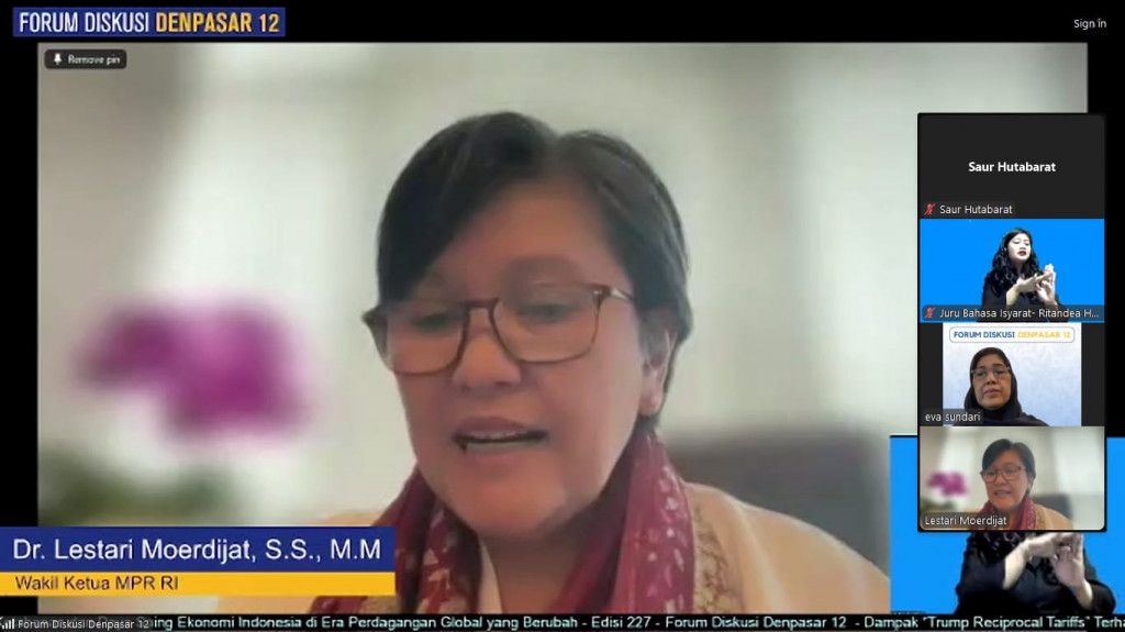 "Dengan strategi yang tepat, Indonesia dapat mengubah tantangan menjadi momentum untuk memperkuat posisi di panggung perdagangan global yang terus berubah saat ini," Lestari dalam sambutan pada diskusi daring bertema Dampak “Trump Reciprocal Tariffs” Terhadap Ketahanan dan Daya Saing Ekonomi Indonesia di Era Perdagangan Global yang Berubah, yang digelar Forum Diskusi Denpasar 12, Rabu, 16 April 2025.