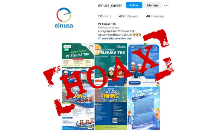 Beberapa waktu terakhir, beredar akun Instagram palsu bernama @elnusa_career dan situs web tiruan www.elnusacareer.com yang menyebarkan informasi rekrutmen palsu. Modusnya sangat meyakinkan yakni menawarkan berbagai posisi pekerjaan, menjanjikan gaji tinggi, hingga mencantumkan link pendaftaran online.Lebih parahnya lagi, akun-akun palsu ini meminta data pribadi dan pungutan biaya administrasi, yang jelas-jelas merupakan praktik penipuan.
