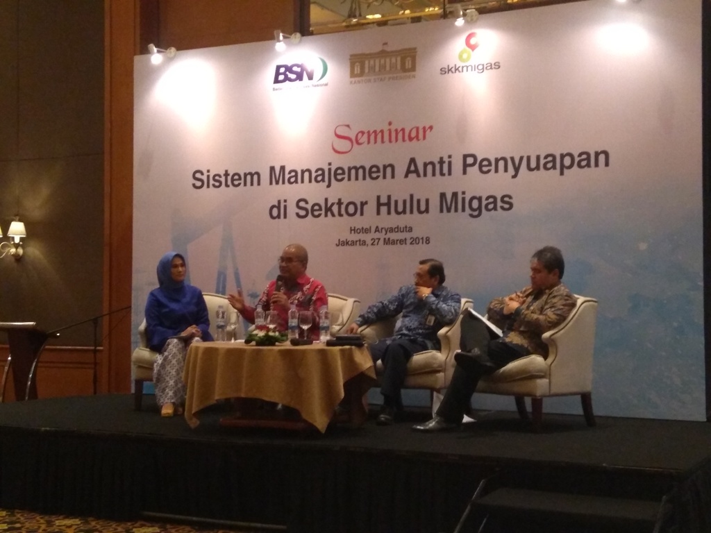 "Telah mengintergrasikan dan mengomunikasikan baik secara internal maupun eksternal," ujar Amien Sunaryadi, dalam seminar ISO 37001:2016 yang diselenggarakan SKK Migas bersama dengan Kantor Staf Presiden (KSP) dan Badan Standardisasi Nasional (BSN), di Jakarta, Selasa, 27 Maret 2018.