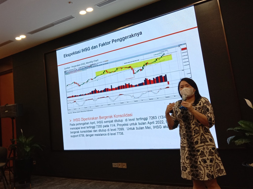 "Secara siklus, Ramadan lebih lesu karena faktor all-time high tadi dapat memicu aksi profit taking, tetapi untuk Mei atau periode setelah Lebaran, kami prediksi dapat menguat dengan rentang pergerakan support-resistance pada 6.759-7.748," kata Martha, dalam acara Media Day: Ramadhan Season by Mirae Asset Sekuritas Indonesia, Kamis, 21 April 2022.