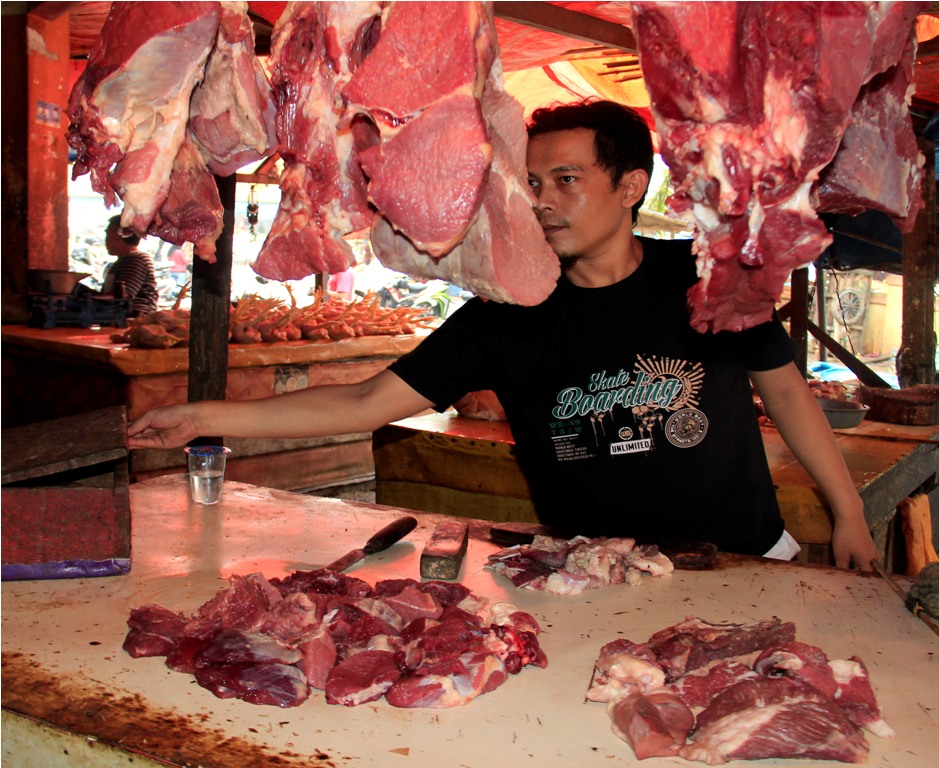 Meski mahal, namun permintaan daging sapi tetap tinggi. Di Pasar Indrapura Kecamatan Air Putih, Batubara, misalnya, pada hari ini, Minggu (27/7/2014), puluhan pedagang daging sapi musiman membuka lapak untuk melayani permintaan daging dari warga yang akan merayakan Lebaran besok.