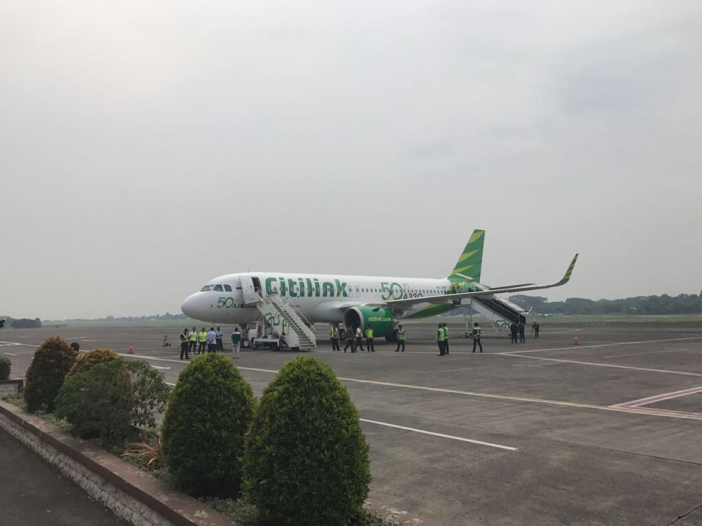 "Karena Bandara Silangit baru saja dilakukan ekspansi landasan, sehingga pesawat kami dengan tipe Airbus 320 sudah bisa masuk," ujar Direktur Utama Citilink Indonesia Juliandra Nurtjahjo saat konferensi pers di dalam pesawat Citilink tujuan Bandara International Silangit, 33.000 km di atas permukaan laut, Sabtu 28 Oktober 2017.