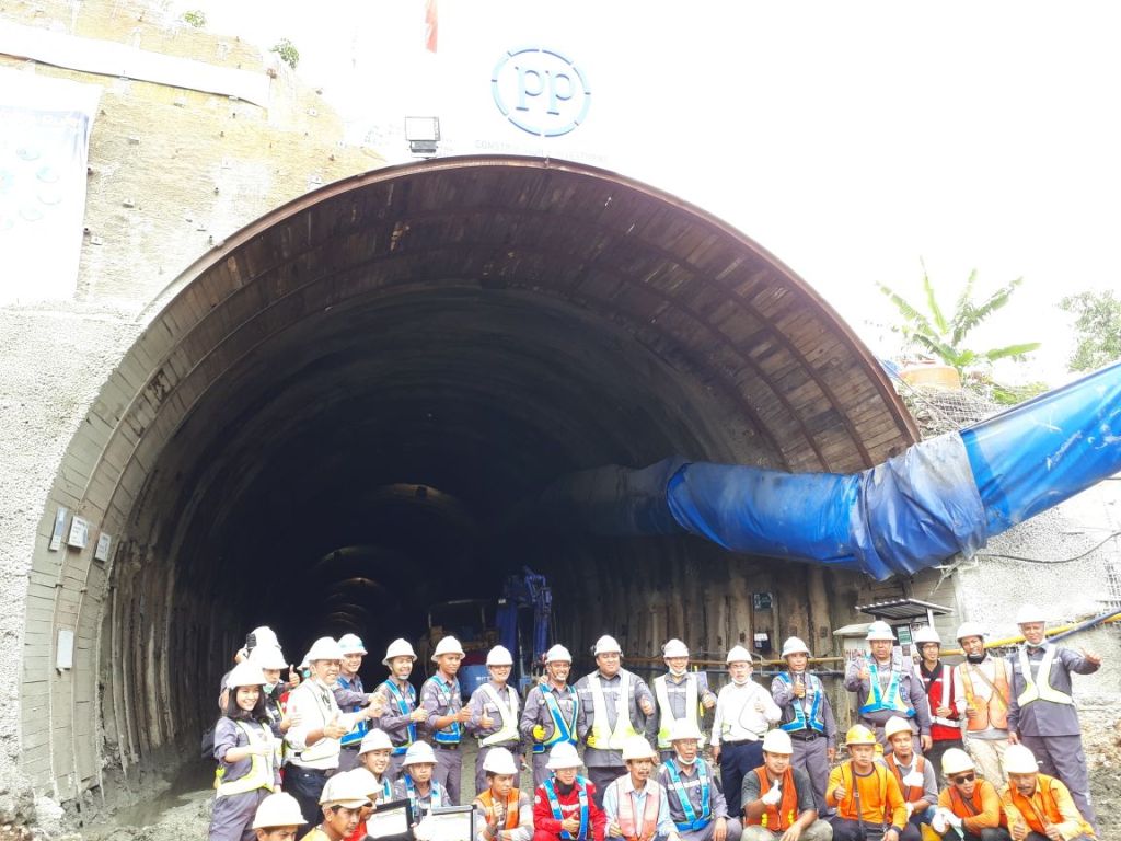 Project Manager terowongan Notog Eko Septiyono sempat memaparkan perkembangan proyek ini. Setelah itu, para pejabat PT PP melihat inlet tunnel dan outlet tunnel.