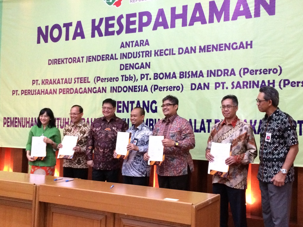 Pada saat yang bersamaan, dilakukan nota kesepahaman atau Memorandum of Understanding (MoU) antara Ditjen IKM Kemenperin dengan PT Krakatau Steel (Persero) Tbk, PT Boma Bima Indra (Persero), PT Perusahaan Perdagangan Indonesia (Persero), dan PT Sarinah (Persero) tentang pemenuhan kebutuhan bahan baku pembuatan alat perkakas pertanian.