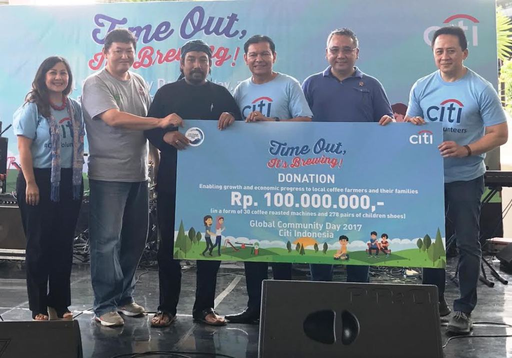 Secara simbolis, donasi berupa 30 mesin kopi sangrai dan 278 pasang sepatu sekolah diberikan oleh CEO Citi Indonesia Batara Sianturi dan Country Head of Corporate Affairs Citi Indonesia Elvera N Makki kepada petani kopi yang diwakili oleh Founder lembaga swadaya masyarakat Gerakan Daerah Terbarukan Kopi Tanah Air Kita Rudy Ersan.