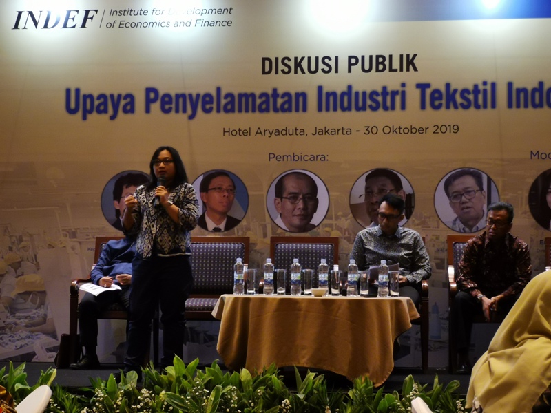 Direktur Program Institute for Development of Economics and Finance (Indef) Esther Sri Astuti menilai serbuan impor tekstil akibat dikeluarkannya Peraturan Menteri Perdagangan (Permendag) Nomor 64 Tahun 2017 tentang Ketentuan Impor TPT. Meski telah direvisi dengan keluarnya Permendag Nomor 77 Tahun 2019, kebijakan itu belum mampu menjamin impor produk TPT melalui Pusat Logistik Berikat (PLB) berkurang.