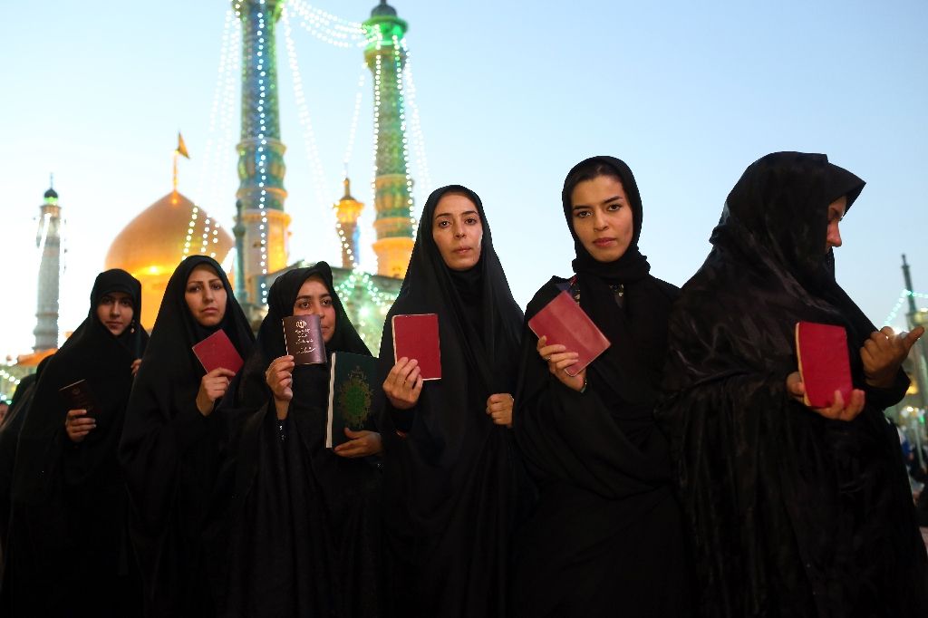 Iranian women hold their IDs as they wait to vote at the Massoumeh shrine in the holy city of Qom on May 19, 2017. (Photo:AFP/Ali Shaigan)