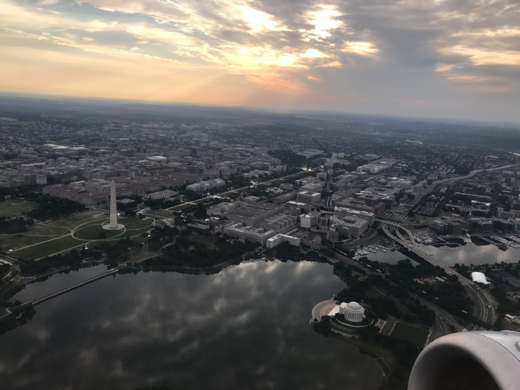 This photo taken from an airplane on July 4, 2017 shows a early morning aerial view of Washington DC. (Photo:AFP/Daniel Slim)