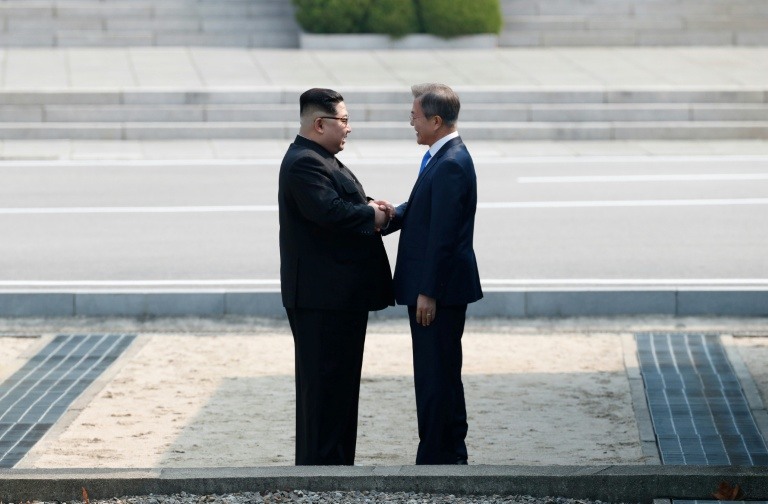 In a day of bonhomie including a highly symbolic handshake over the Military Demarcation Line that divides the two countries, the pair issued a declaration on "the common goal of realising, through complete denuclearisation, a nuclear-free Korean peninsula".