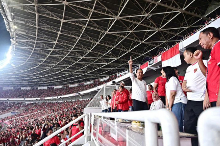 Jakarta: Presiden Joko Widodo dan Ibu Iriana turut menyaksikan laga Timnas Indonesia melawan Filipina di Stadion Utama Gelora Bung Karno, Jakarta, Selasa, 11 Juni 2024 malam.