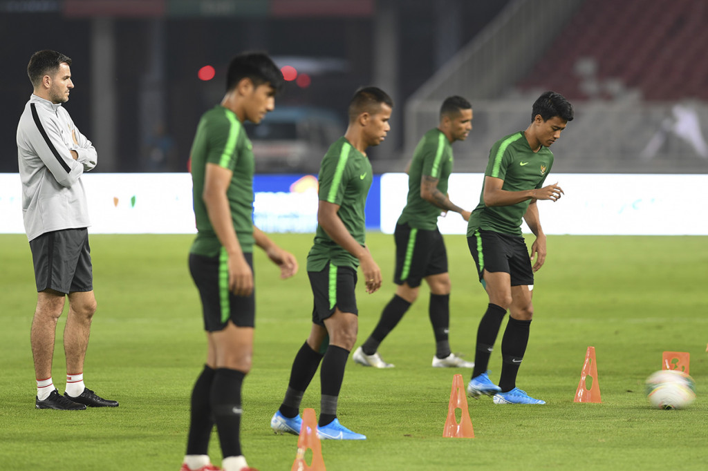 Jakarta: Pemain Timnas Indonesia mengikuti latihan resmi di Stadion Utama Gelora Bung Karno, Senayan, Jakarta, Rabu, 4 September 2019. Latihan tersebut sebagai persiapan melawan timnas Malaysia pada 5 September dalam ajang Kualifikasi Piala Dunia 2022, Grup G Zona Asia. Antara Foto/Hafidz Mubarak A Cek Berita dan Artikel yang lain di Google News