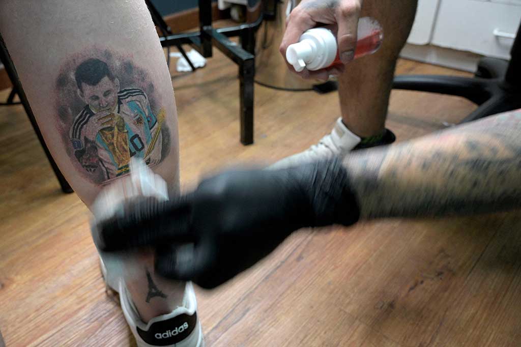"Beberapa telah membuat janji untuk tato ular dan tengkorak, tapi mereka mengubahnya ke Messi atau trofi Piala Dunia. Saya punya dua hingga tiga pertemuan dalam sehari," ujar dia.