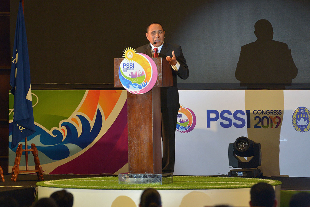 Badung: Edy Rahmayadi memutuskan untuk mundur dari jabatannya sebagai Ketua Umum Persatuan Sepak Bola Seluruh Indonesia (PSSI). Hal ini dikatakan Edy dalam kongres tahunan PSSI di kawasan Nusa Dua, Badung, Bali, Minggu, 20 Januari 2019. Antara Foto//Nyoman Budhiana Cek Berita dan Artikel yang lain di Google News
