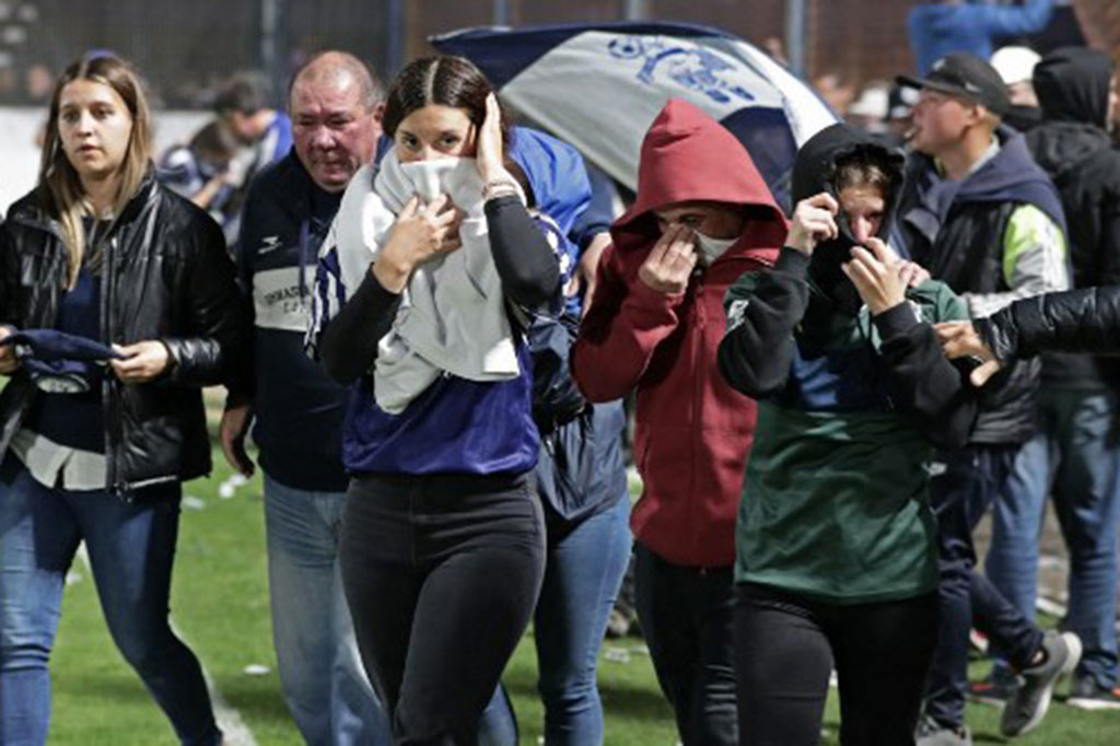 Polisi menembakkan peluru karet dan gas air mata di luar Stadion Carmelo Zerillo di La Plata, sekitar 50 kilometer (31 mil) selatan ibu kota Argentina ketika mereka berusaha untuk menghentikan para penggemar yang terus merangsek ke tempat yang sudah ramai.