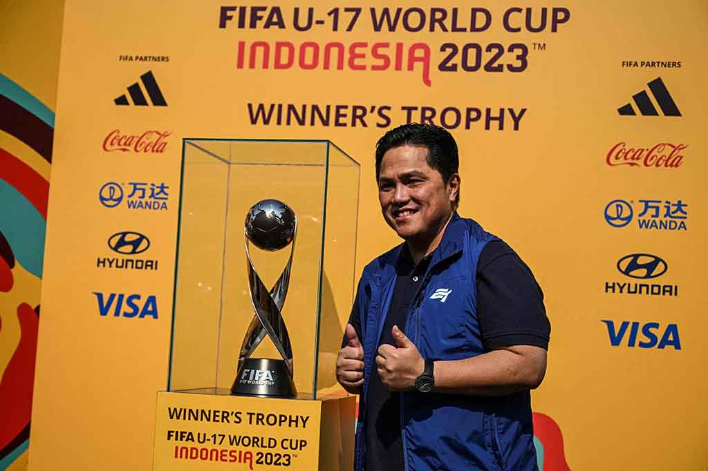 Jakarta: Ketua Umum Persatuan Sepak Bola Seluruh Indonesia (PSSI) Erick Thohir menyatakan acara Trophy Tour Piala Dunia U-17 di Kota Surabaya, Minggu, 29 Oktober 2023, menjadi gelaran terbaik dari kota-kota sebelumnya karena banyaknya warga Kota Pahlawan ikut menyambut dan menyemarakkan acara tersebut.