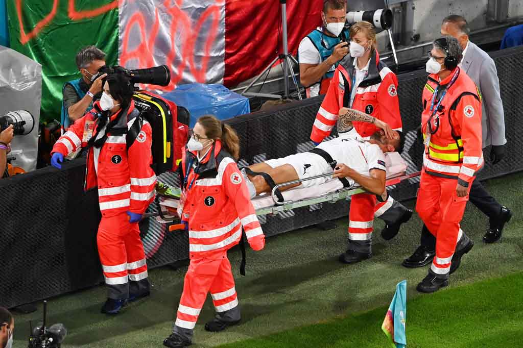 "Dia sudah menjadi salah satu pemain terbaik turnamen ini dan dia akan tetap seperti itu bahkan jika dia tidak bisa bermain dalam pertandingan berikutnya. Kami amat sangat sedih pada apa yang terjadi yang sepertinya cukup serius," kata manajer Italia Roberto Mancini dalam konferensi pers.