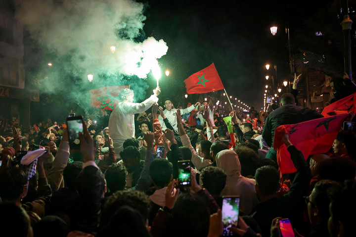Teriakan, nyanyian, tangisan dan air mata warga Maroko meledak dengan kegembiraan. Ribuan warga turun ke jalanan Ibu Kota Rabat.