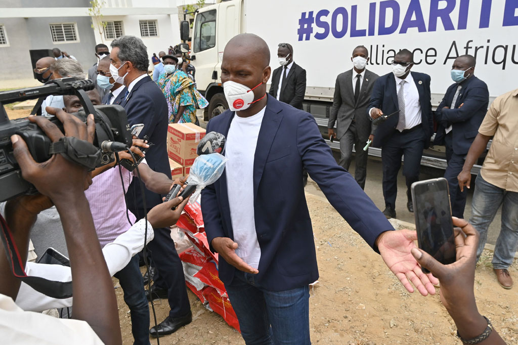 Drogba bersama Salif Traore, dikenal sebagai A'Salfo, pentolan Magic System, menyalurkan bantuan fase kedua dari program 'karavan solidaritas melawan covid-19', yang dibiayai oleh yayasan yang mereka dirikan, Uni Eropa, dan suatu perusahaan real estate.