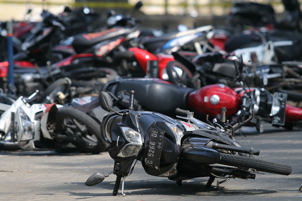 Kerusakan Akibat Ricuh Suporter Persik-PSIM Kediri: Pertandingan Liga 2 antara Persik melawan PSIM Yogyakarta di Stadion Brawijaya, Kediri, Jawa Timur, Senin, 2 September 2019 petang, diwarnai bentrok antarsuporter. Kericuhan mengakibatkan sedikitnya tiga mobil rusak berat, ratusan sepeda motor rusak, sejumlah fasilitas umum hancur, dan puluhan suporter terluka. Antara Foto/Prasetia Fauzani
