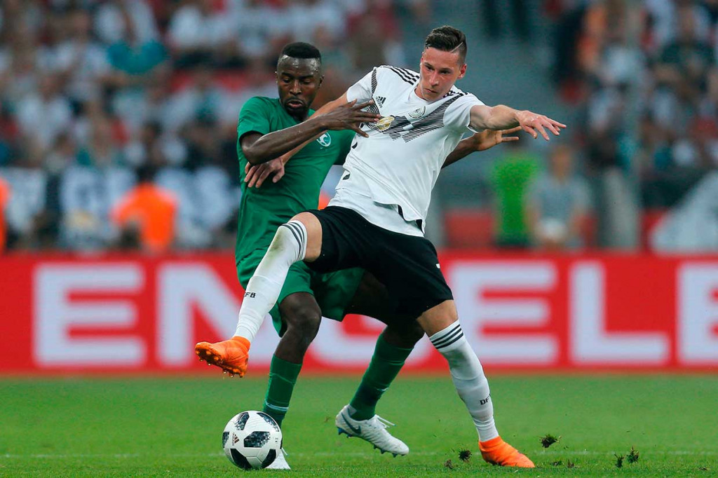 Leverkusen: Juara dunia Jerman tampil kurang meyakinkan saat melakukan pertandingan persahabatan menuju Piala Dunia 2018 melawan Arab Saudi, Sabtu, 9 Juni 2018 dini hari WIB. Tim Panaser menang tipis 2-1. AFP Photo/Leon Kuegeler/Patrik Stollarz Cek Berita dan Artikel yang lain di Google News