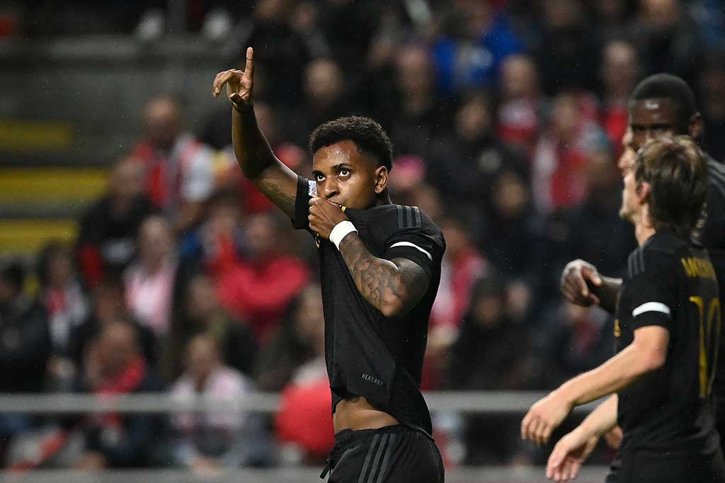 Selama lima musim berseragam Los Blancos, Rodrygo tercatat telah mencetak 39 gol dari 179 penampilan. Pemain berusia 22 tahun tersebut juga telah mempersembahkan delapan trofi untuk Real Madrid di antaranya satu Champions League, satu Club World Cup, satu Piala Super Eropa, dua LaLiga, satu Copa del Rey dan dua Piala Super Spanyol. AFP PHOTO/Thomas Coex/Cristina Quicler/Khaled Desouki/Cesar Manso Cek Berita dan Artikel yang lain di Google News