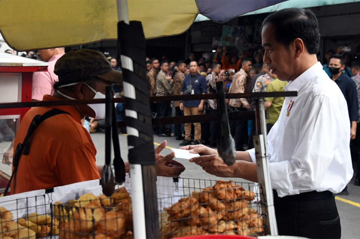 Jokowi juga memberikan amplop berisi bantuan langsung tunai (BLT) kepada sejumlah pedagang di pasar tersebut.