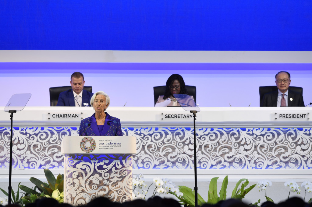 Nusa Dua: Presiden Joko Widodo membuka Rapat Pleno Pertemuan Tahunan IMF-Bank Dunia 2018 yang digelar di Bali Nusa Dua Convention Center (BNDCC), Jumat, 12 Oktober 2018. Dalam bagian pidatonya, Jokowi mengumpamakan kondisi ekonomi global sekarang tak ubahnya dengan cerita dalam serial televisi Game of Thrones. Antara Foto/ICom/AM IMF-WBG Cek Berita dan Artikel yang lain di Google News