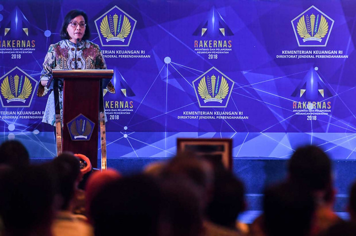 Jakarta: Menteri Keuangan Sri Mulyani dalam Rakernas Akuntansi dan Pelaporan Keuangan Pemerintah 2018 di Jakarta, Kamis, 20 September 2018, mewakili pemerintah memberikan apresiasi kepada kementerian atau lembaga dan pemda yang telah meningkatkan kualitas pelaporan keuangannya. Antara Foto/Hafidz Mubarak A Cek Berita dan Artikel yang lain di Google News