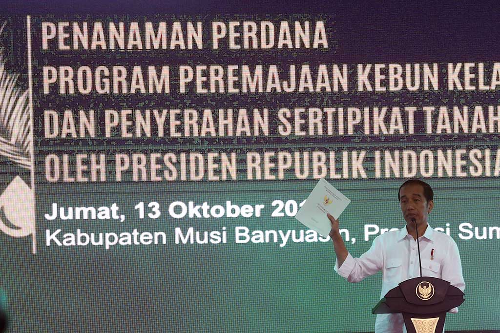 Metrotvnews.com, Palembang: Presiden Joko Widodo menyatakan akan mengecek lagi proses peremajaan kebun kepala sawit di Musi Banyuasin, Sumsel, setahun lagi atau awal 2019 mendatang. Hal itu untuk memeriksa pertumbuhan benihnya. MI/ANTARA Cek Berita dan Artikel yang lain di Google News