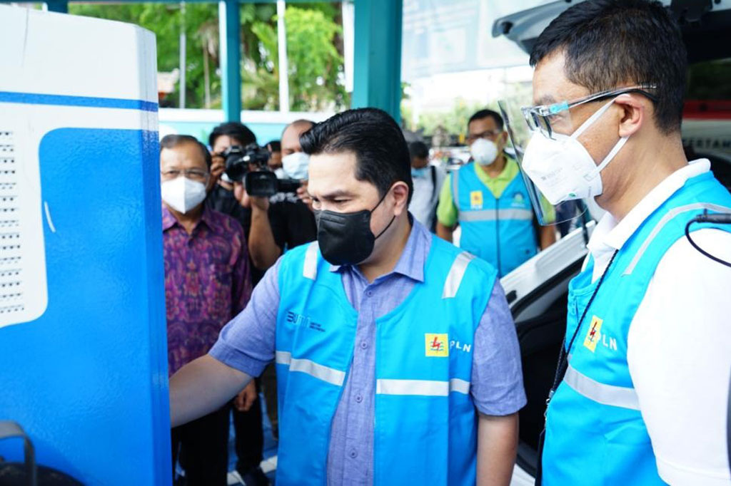 "Hari ini saya mencoba mengendarai mobil listrik dan mengecek kesiapan stasiun pengisian kendaraan listrik (charging station) di Bali. Mobil listrik ini sudah dicoba oleh tim PLN dari Jakarta ke Bali, yang apabila dengan BBM ongkosnya adalah Rp1,1 juta, maka dengan mobil listrik hanya Rp200 ribu. Hal ini tentunya sangat menghemat terutama di masa pandemi seperti ini," kata Erick Thohir.