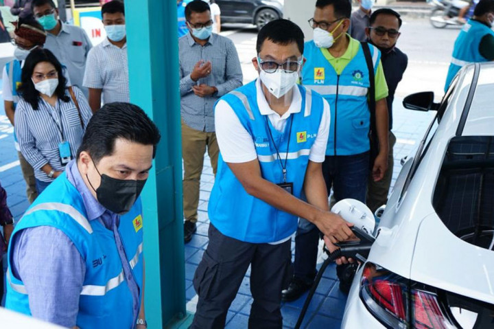Jakarta: Menteri BUMN Erick Thohir melakukan pengecekan sejumlah fasilitas stasiun pengisian mobil listrik (charging station) sambil menguji coba mengendarai mobil listrik. Pada kesempatan tersebut, Erick menegaskan kesiapan Indonesia untuk menjadi pemain utama industri mobil listrik.