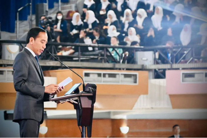 "Dengan tantangan-tantangan yang ada tadi, kita perlu inovasi besar-besaran yang bisa menjadi terobosan yang bisa menjadi langkah besar kita ke depan itu seperti apa. Untuk menjadikan permasalahan pangan dunia sebagai peluang Indonesia menjadi lumbung pangan," kata Presiden Jokowi saat menyampaikan orasi dalam Sidang Terbuka Institut Pertanian Bogor (IPB) dalam rangka Dies Natalis ke-60 di Kampus IPB Bogor, Jawa Barat, Jumat, 15 September 2023.