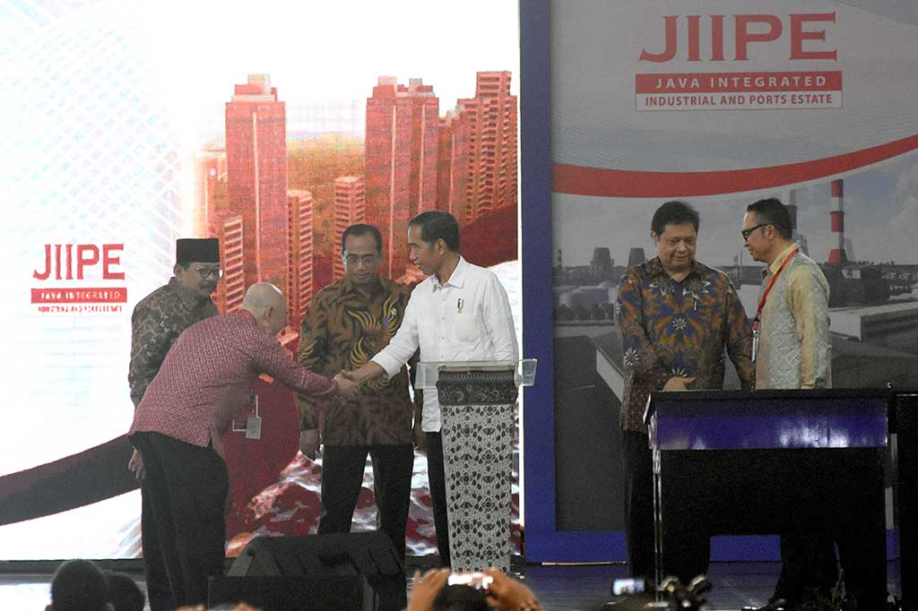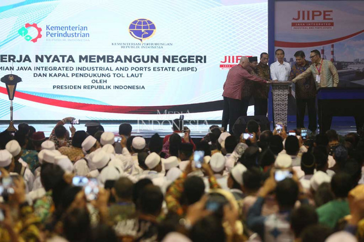 Gresik: Presiden Joko Widodo meresmikan kawasan industri Java Integrated Industrial and Port Estate (JIIPE) di Gresik, Jawa Timur. JIIPE merupakan kawasan terintegrasi antara pelabuhan laut, industri, dan perumahan. Kawasan JIIPE tercatat seluas 2.691 Ha, dan akan berfungsi sebagai zona industri terpadu terbesar di Jawa Timur dengan dukungan penuh infrastruktur dan fasilitas penunjang lainnya. MI/Ramdani Cek Berita dan Artikel yang lain di Google News