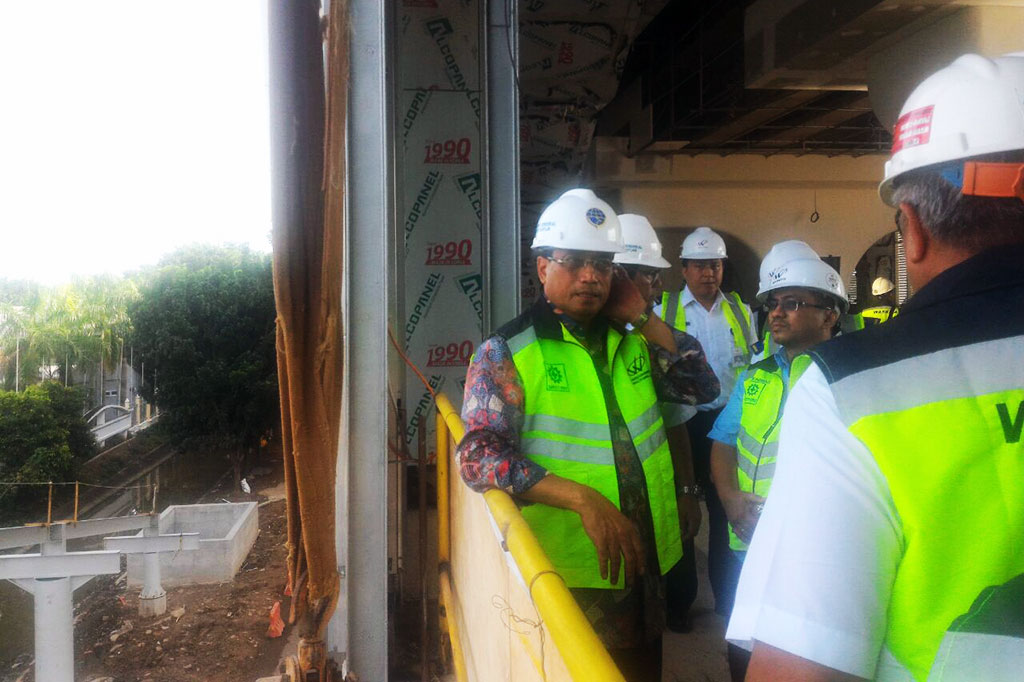 Palembang: Kementerian Perhubungan (Kemenhub) menargetkan proyek kereta ringan di Palembang sudah bisa diuji coba pada Maret 2018. Setelah itu, proyek LRT akan melalui masa uji coba (commisioning) selama dua bulan hingga Mei. Medcom.id/Eko Nordiansyah Cek Berita dan Artikel yang lain di Google News