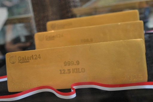 "Karena dari hulu hingga hilir emas akan diolah dan disimpan di dalam negeri, dan tidak mengalir ke luar negeri," ujar Prabowo. AFP PHOTO/Bay Ismoyo Cek Berita dan Artikel yang lain di Google News