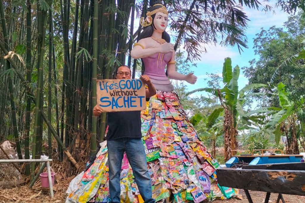 Sebagian sampah plastik itu dibuat sebuah patung menyerupai Dewi Sri, yang sarat dengan arti Dewi Kemakmuran. Dewi Sri yang konon dihormati orang Jawa itu didirikan tepat di tengah museum. Dari bagian patung itu, di mana rok panjang si Dewi Sri terbuat dari bungkus sachet produk rumah tangga sekali pakai.