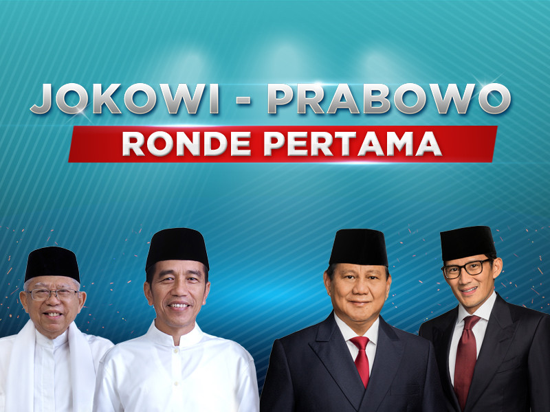 Dua pasangan capres cawapres, Joko Widodo-Ma'ruf Amin dan Prabowo Subianto-Sandiaga Uno menjalani debat perdana Pilpres 2019. Debat perdana ini mengangkat tema hukum, HAM, korupsi, dan terorisme. Debat dimulai dengan penyampaian visi misi kedua pasangan calon presiden dan wakil presiden.