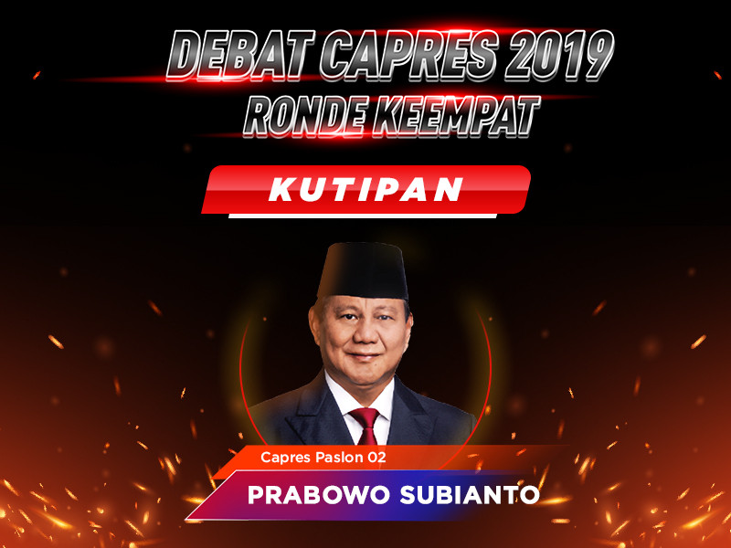 Calon Presiden (Capres) Joko Widodo dan Prabowo Subianto menjalani debat ronde keeempat Pilpres 2019. Debat keempat ini mengangkat tema Ideologi, Pemerintahan, Pertahanan dan Keamanan, serta Hubungan Internasional. Cek Berita dan Artikel yang lain di Google News