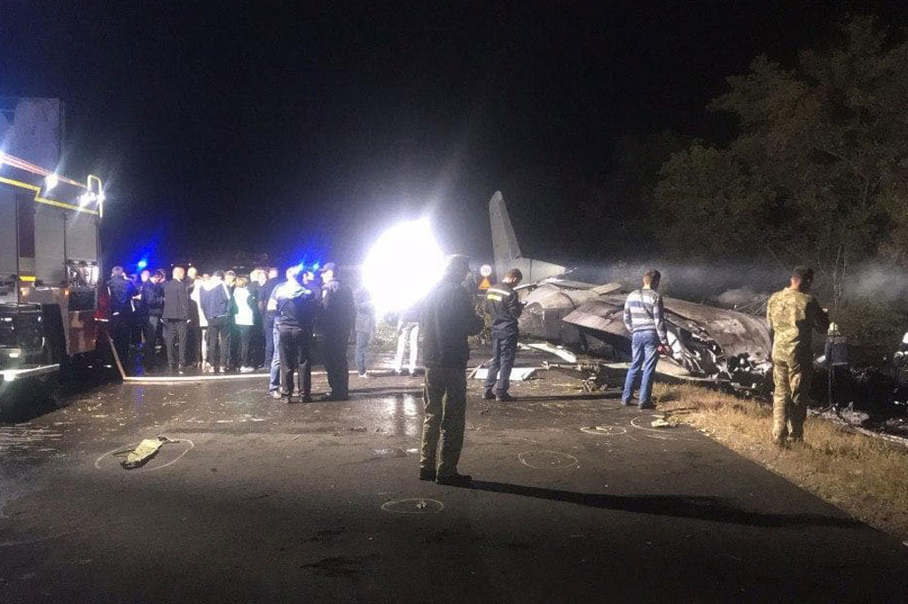 Pesawat angkut Antonov-26 jatuh sekitar pukul 20:50 waktu setempat (17:50 GMT), dua kilometer (1 mil) dari pangkalan udara militer Chuhuiv. Pesawat terbakar setelah kecelakaan dan berhasil dipadamkan satu jam kemudian.