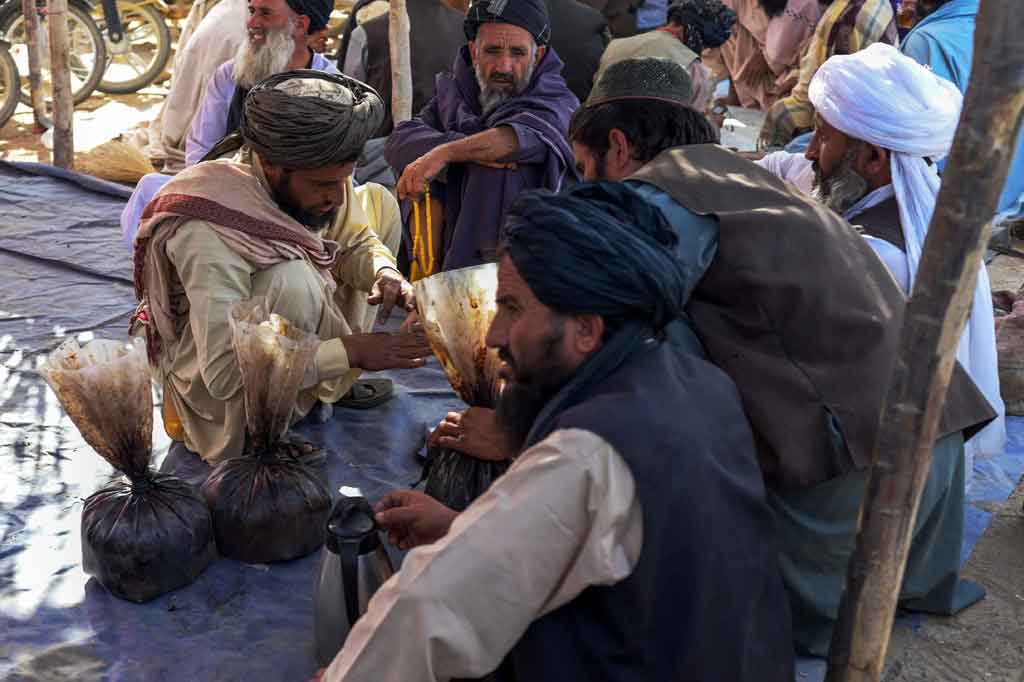 Jakarta: Ratusan produsen, penjual, dan pembeli berbincang sambil minum teh hijau di sekitar karung opium dan ganja, di sekitar Kandahar, mendiskusikan harganya yang melonjak sejak pengambilalihan pemerintahan Afghanistan oleh Taliban.