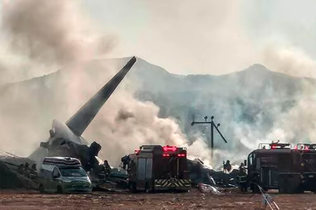 Sebuah pesawat Boeing 737-800 Jeju Air jatuh di Bandara Internasional Muan setelah roda pendaratan depannya rusak, menewaskan 179 dari 181 penumpang dan awak pesawat, dalam insiden penerbangan paling mematikan di Korea Selatan sejak 1997.